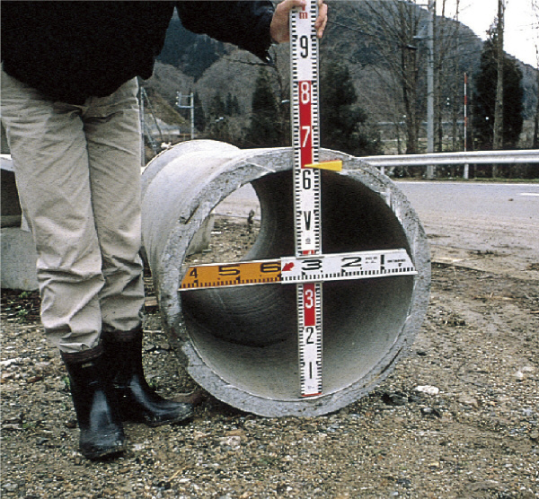両端間の距離、構造物やヒューム管の内寸法を測定するのに適しています。(クロス金具CR-01を使用することで、単品ロッドと組み合わせることもできます。)