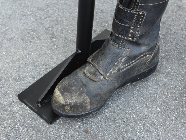 足で踏んで転圧しやすいワイドタイプ。
